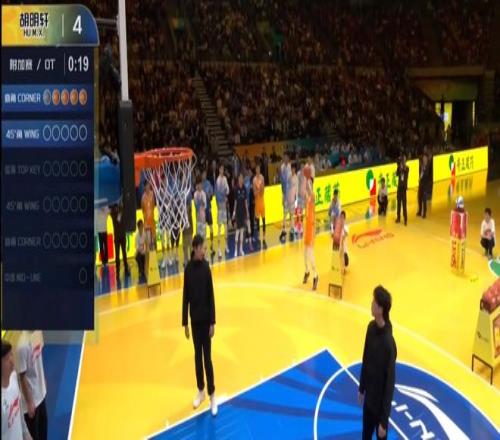三分大赛决赛第二个打响,胡明轩、曾凌铉、于米提参加。第一位出场的是胡明轩,他第二个、第五个点位全中,花球点位5中3,最终得分22分;第二位出场的是曾凌铉,花球点位5中4,但最后一个点位只进2个,最终拿到21分;第三位出场的是于米提,他花球点位5中4,超远三分轰进,最终成绩22分,打平胡明轩进入加赛。